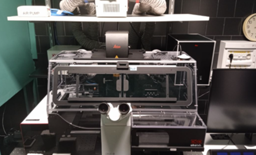 A Leica Stellaris 8 konfokális mikroszkóp transzmissziós (pásztázó mód, nem konfokális), kamerás bright field transzmissziós és fluoreszcens (DAPI, FITC, FITC LP, TXR szűrőkockák), 6 objektívvel (10x/0.3, 20x/0.4, 20x/0.75, 40x/0.8, 40x/1.25 GLYC és 63x/1.4 OIL) valamint fehér lézeres gerjesztéssel konfokális fluoreszcens leképezésekre alkalmas (5 spektráldekorral). A fluoreszcencia-életidő mérések kétféle módja (Tau sense és FALCON) a 440 nm-től 790 nm-ig választható gerjesztőlézer használatával érhető el. Hosszú távú méréseket az Adaptive Focus Control funkció és az Okolab inkubátor (hőmérséklet és CO2 szabályozás) segíti.